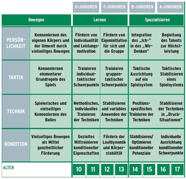 Individuelle Entwicklungsunterschiede müssen insbesondere bei den jüngeren Spielerinnen beachtet werden. Es gilt das Motto "Stärken stärken, Schwächen schwächen".
