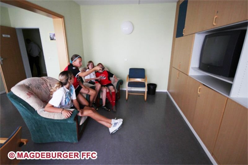 Die Schülerinnen und Schüler - so auch die Fußballerinnen des Nachwuchsleistungszentrums - wohnen in Zweibett-Zimmern. Die Gemeinschaftsräume des Hauses können genutzt werden, um Hausaufgaben zu erledigen oder sich zu erholen.